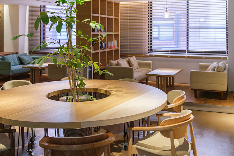 The open lounge at WPI-ASHBi, where free and open discussions take place across disciplines.