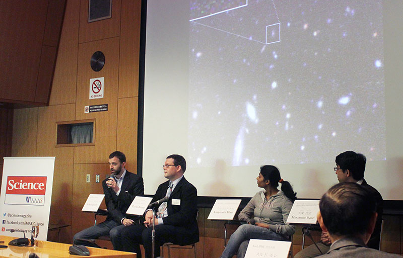 Quimby and colleagues at a 2014 press conference publicizing the discovery of a strongly lensed Type Ia supernova. (Photo: Kavli IPMU, WPI)